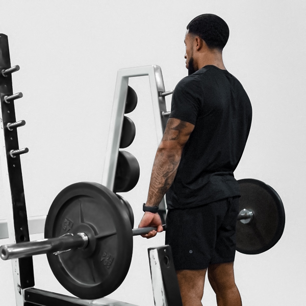 Adjust the Roman chair so the hip pads sit just below your hip crease, allowing full flexion, and secure your ankles under the rear pads.