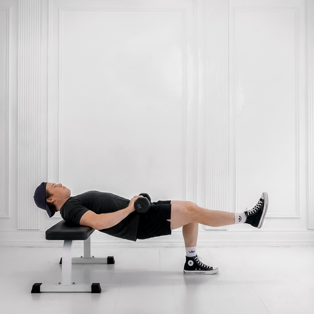Inhale during lowering phase; exhale as you drive hips up and brace core.