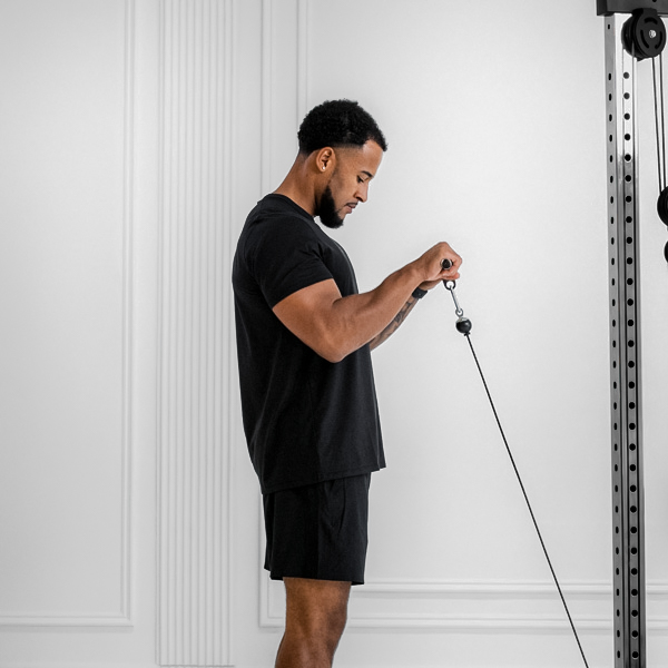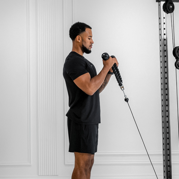 A cable isolation movement targeting the biceps long head by placing the shoulder in extension. It creates constant tension throughout the rep to maximize hypertrophy.