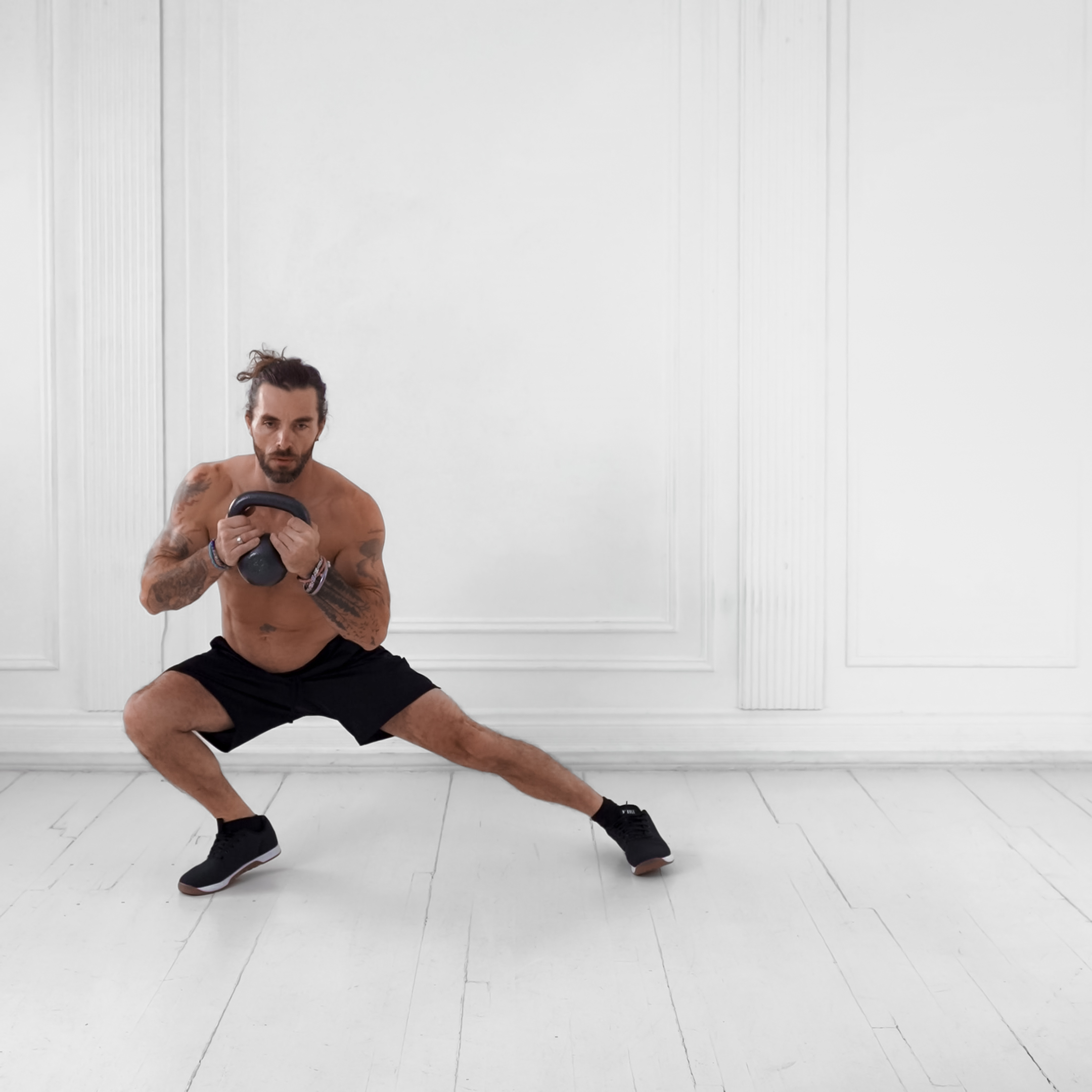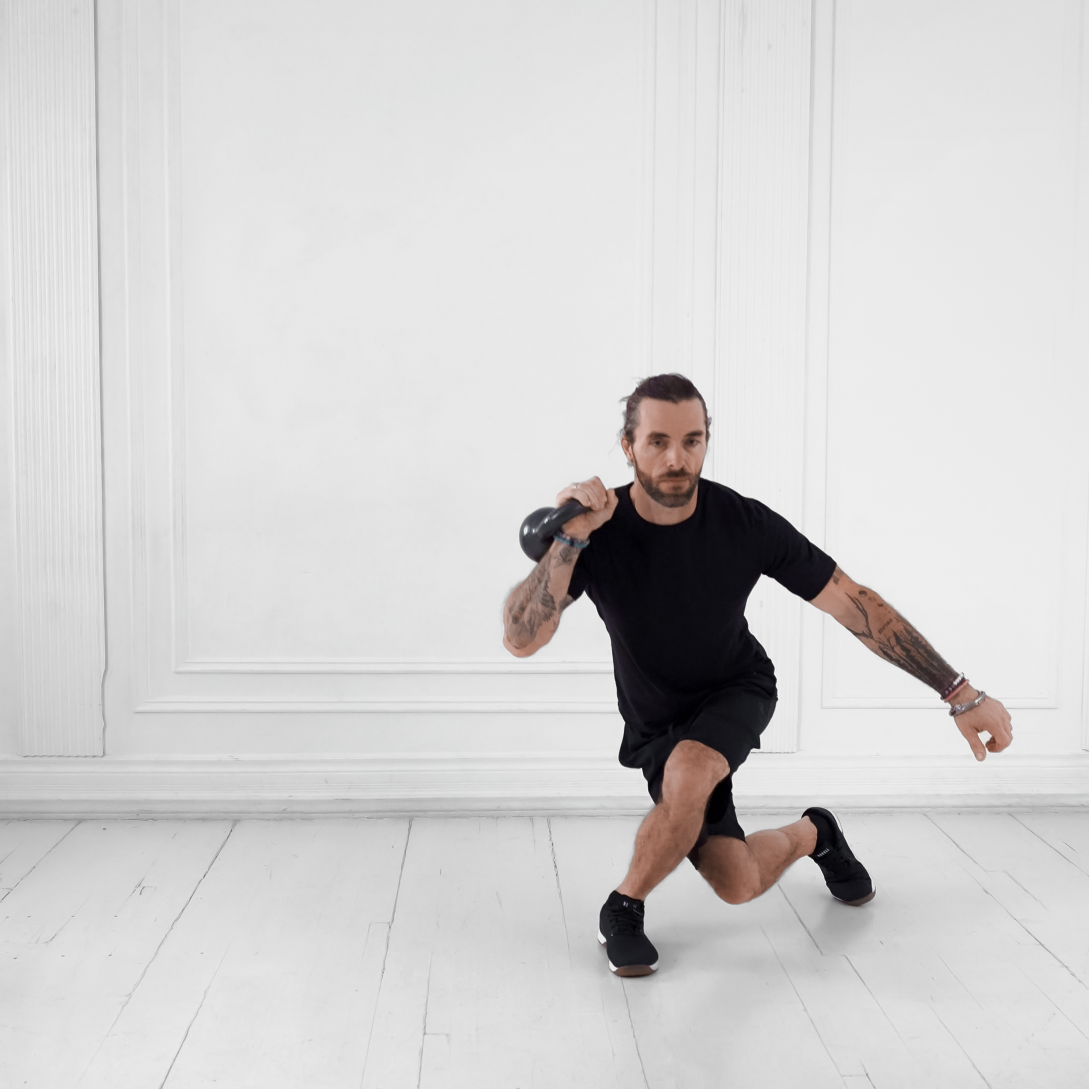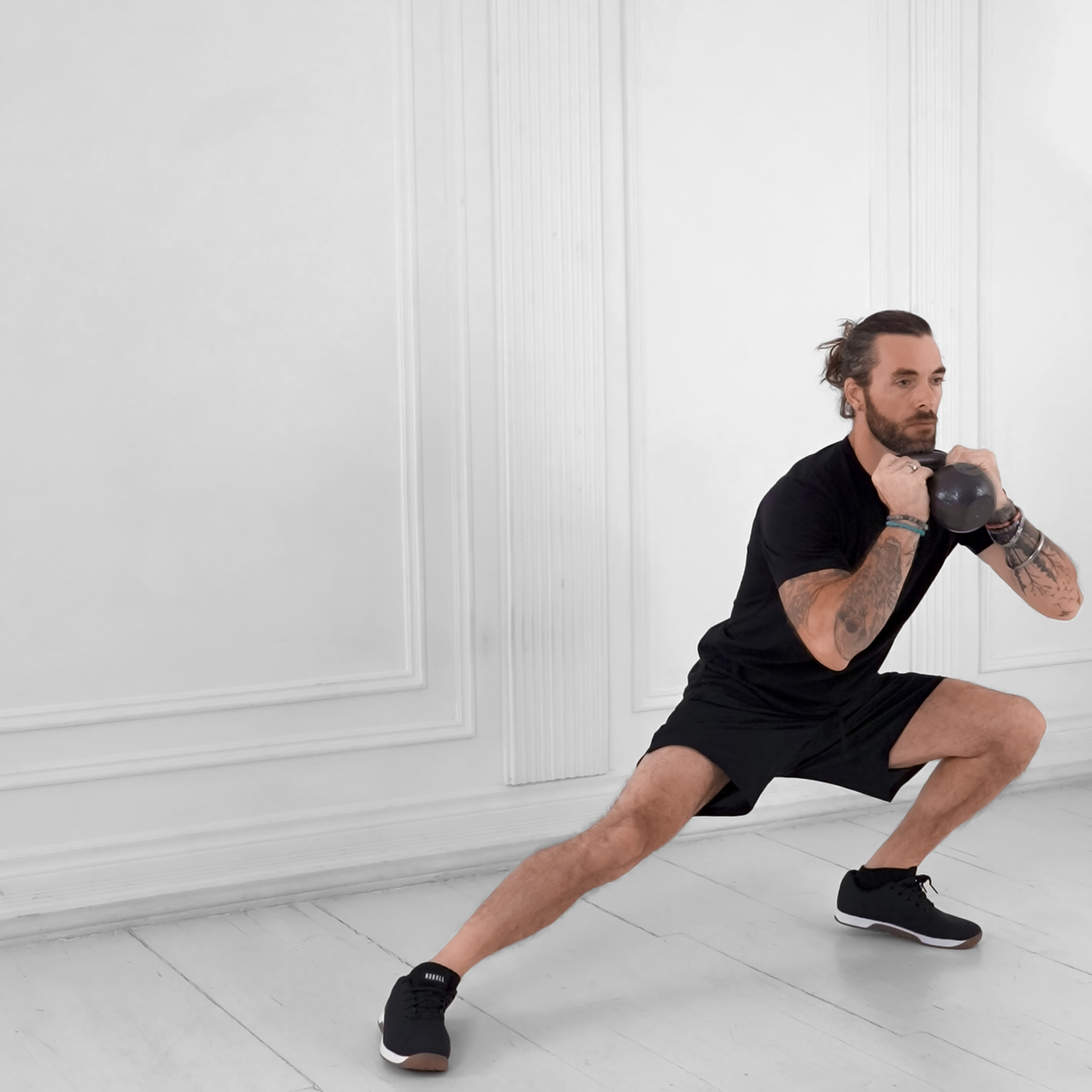 A unilateral lunge variation that targets the glutes, quads, and adductors to build hip stability and lower body strength; commonly used to emphasize the glute medius and inner thigh.