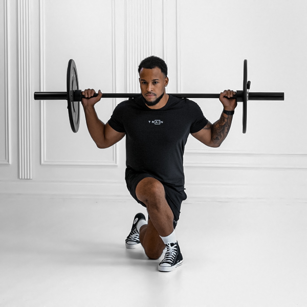 Inhale as you step back and lower into the lunge; exhale as you drive back up to standing.