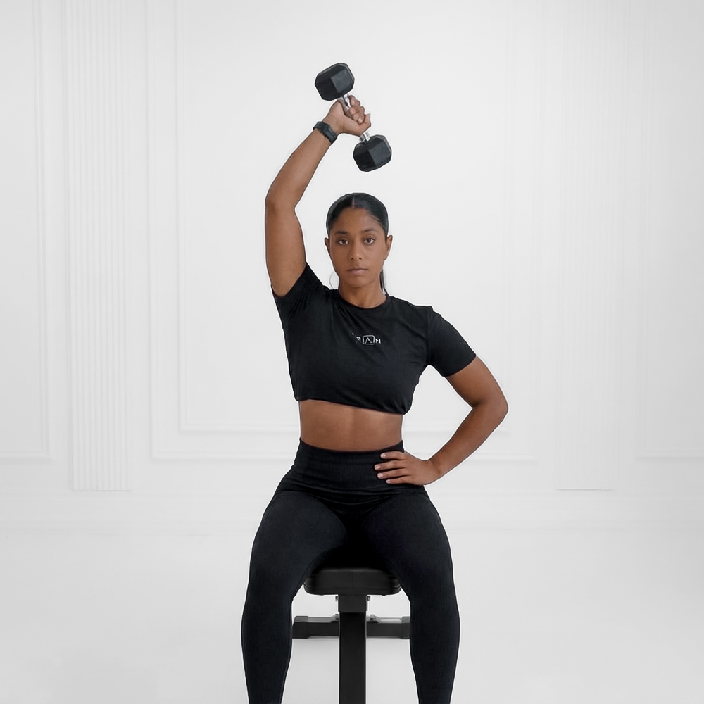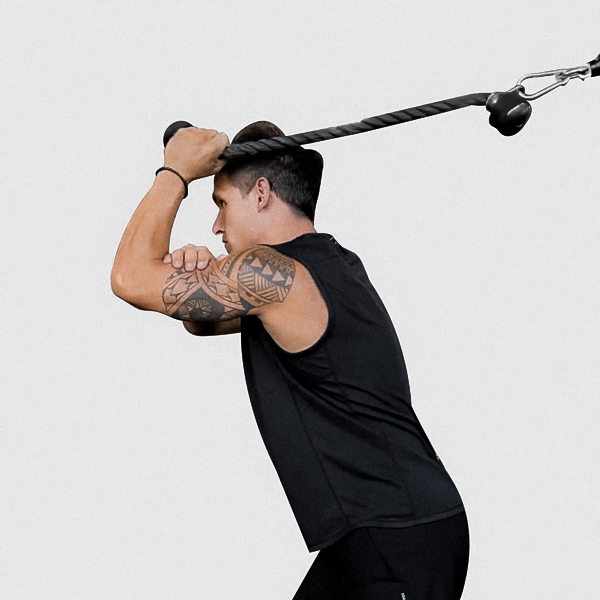 Cable isolation exercise targeting triceps, especially the long head, for building arm strength and hypertrophy through constant tension; used as a finisher in upper body workouts.