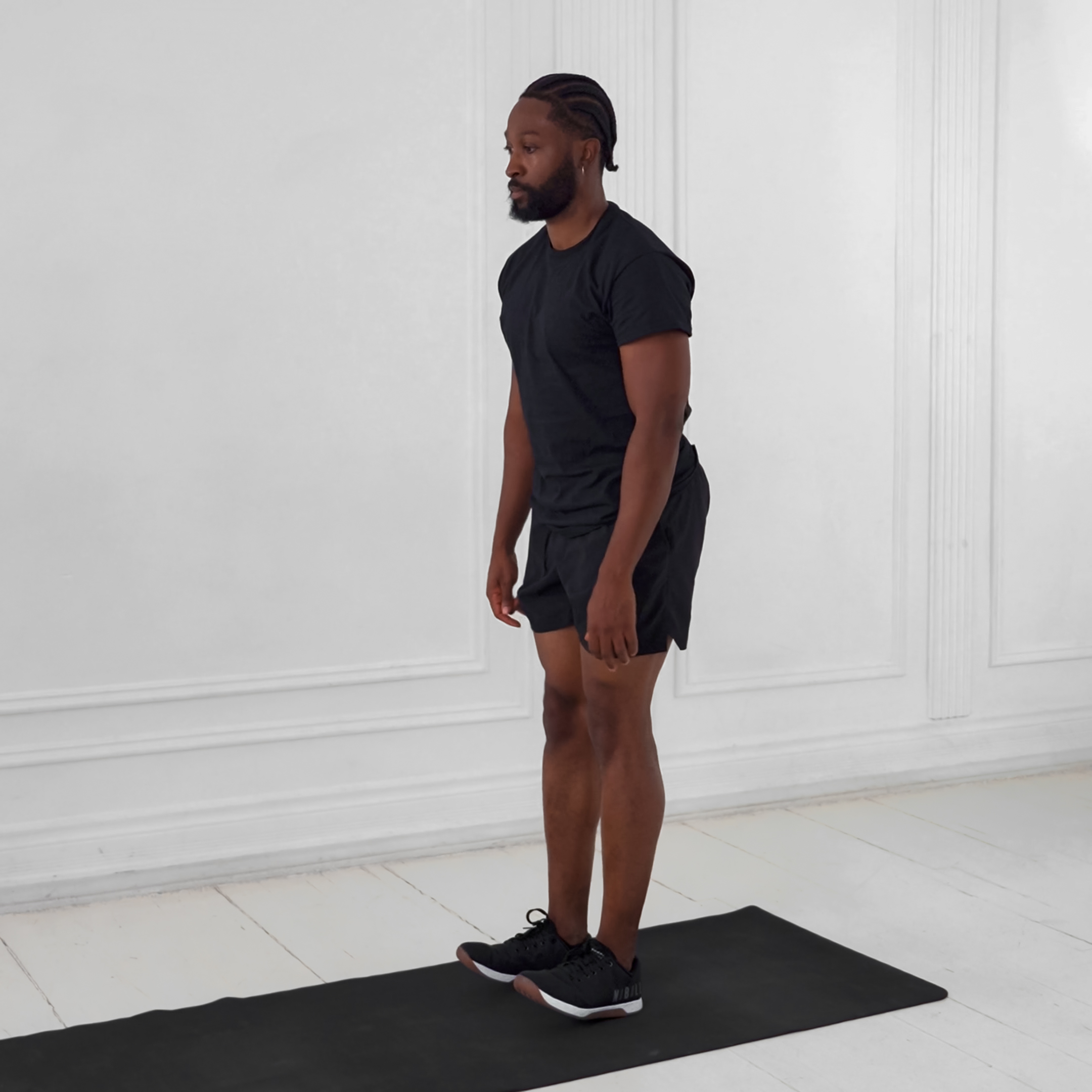Move from full plantarflexion (toes pointed) to maximum dorsiflexion where toes approach the shin without knee bend.