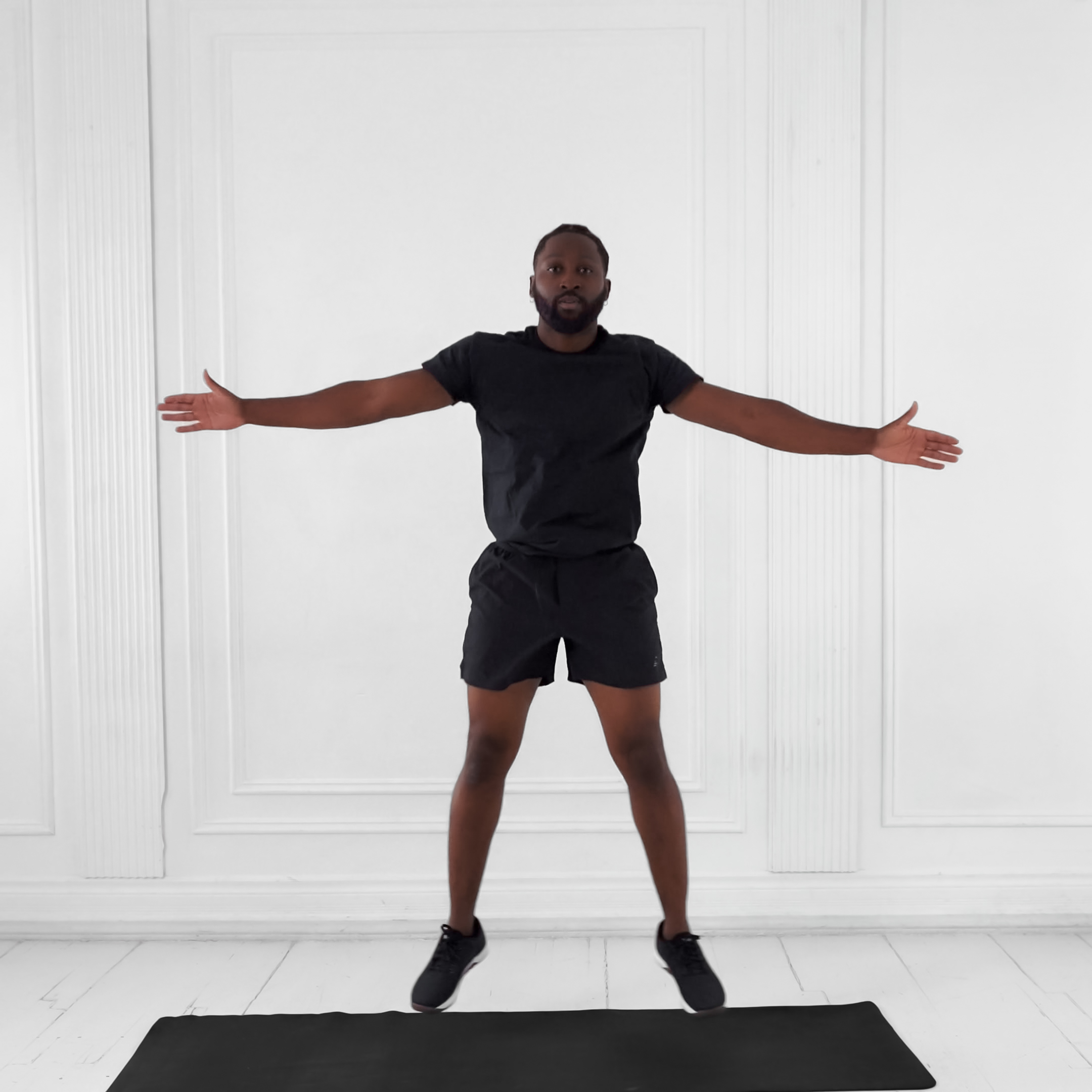 A dynamic jumping jack variation that crosses arms and legs alternately, engaging full body to boost cardiovascular endurance, coordination, and calorie burn.