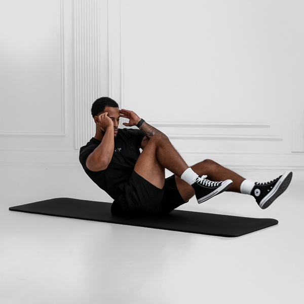 Bodyweight exercise that targets the rectus abdominis to build core strength and stability; performed lying on the floor with knees bent, emphasizing controlled spinal flexion.