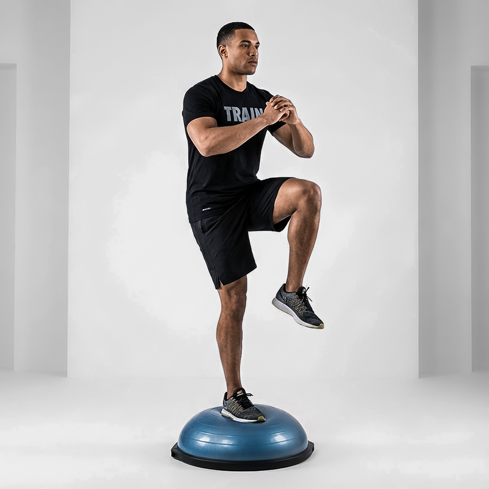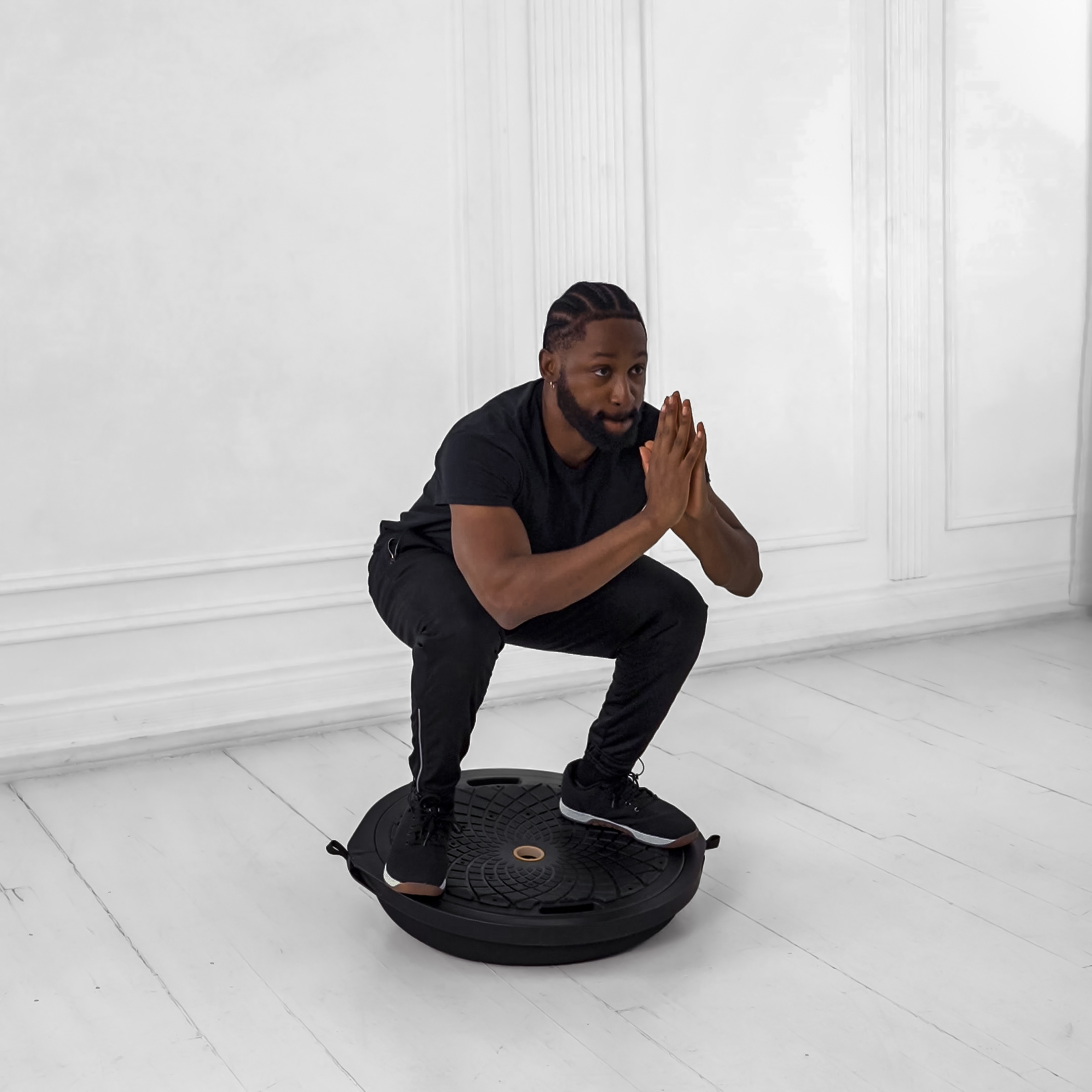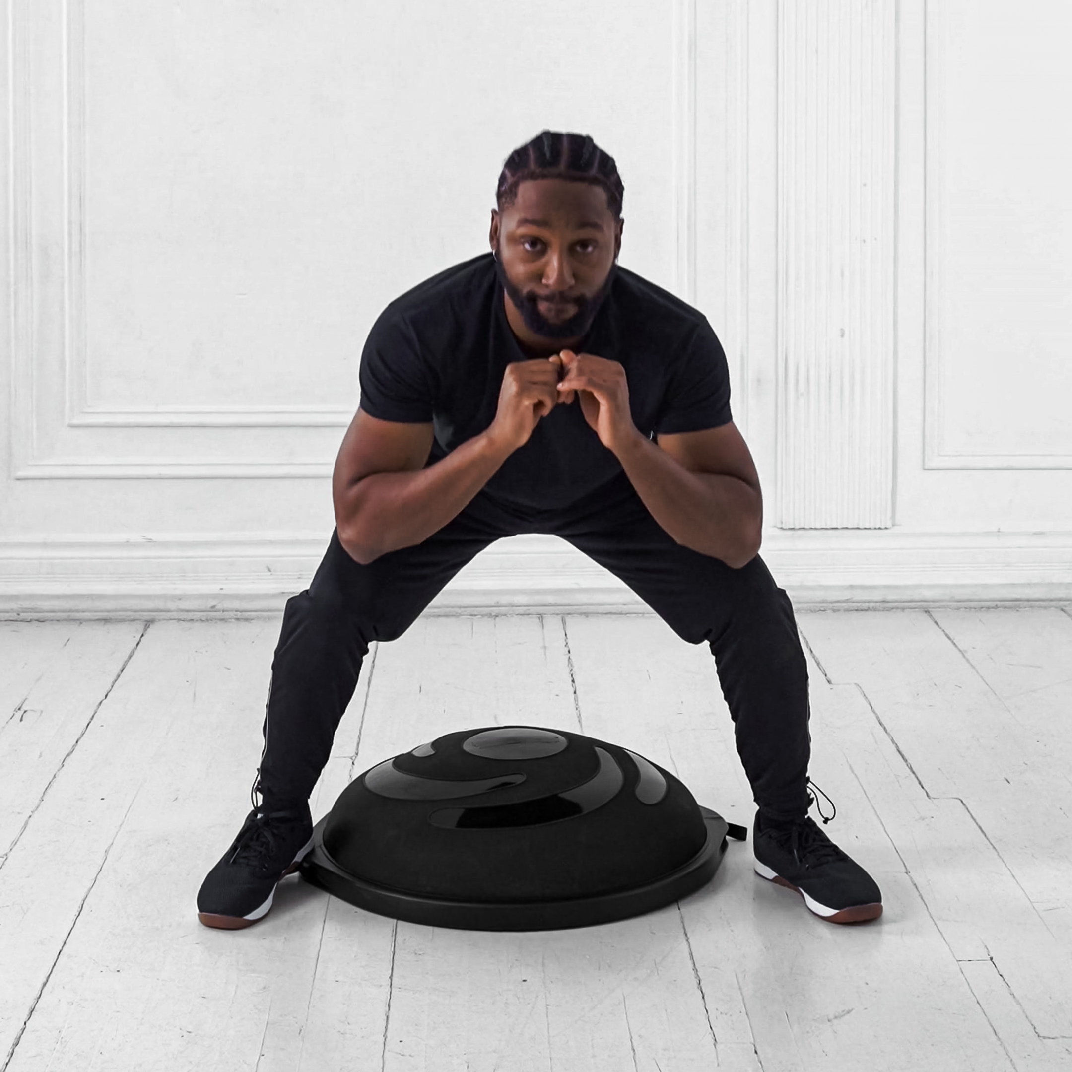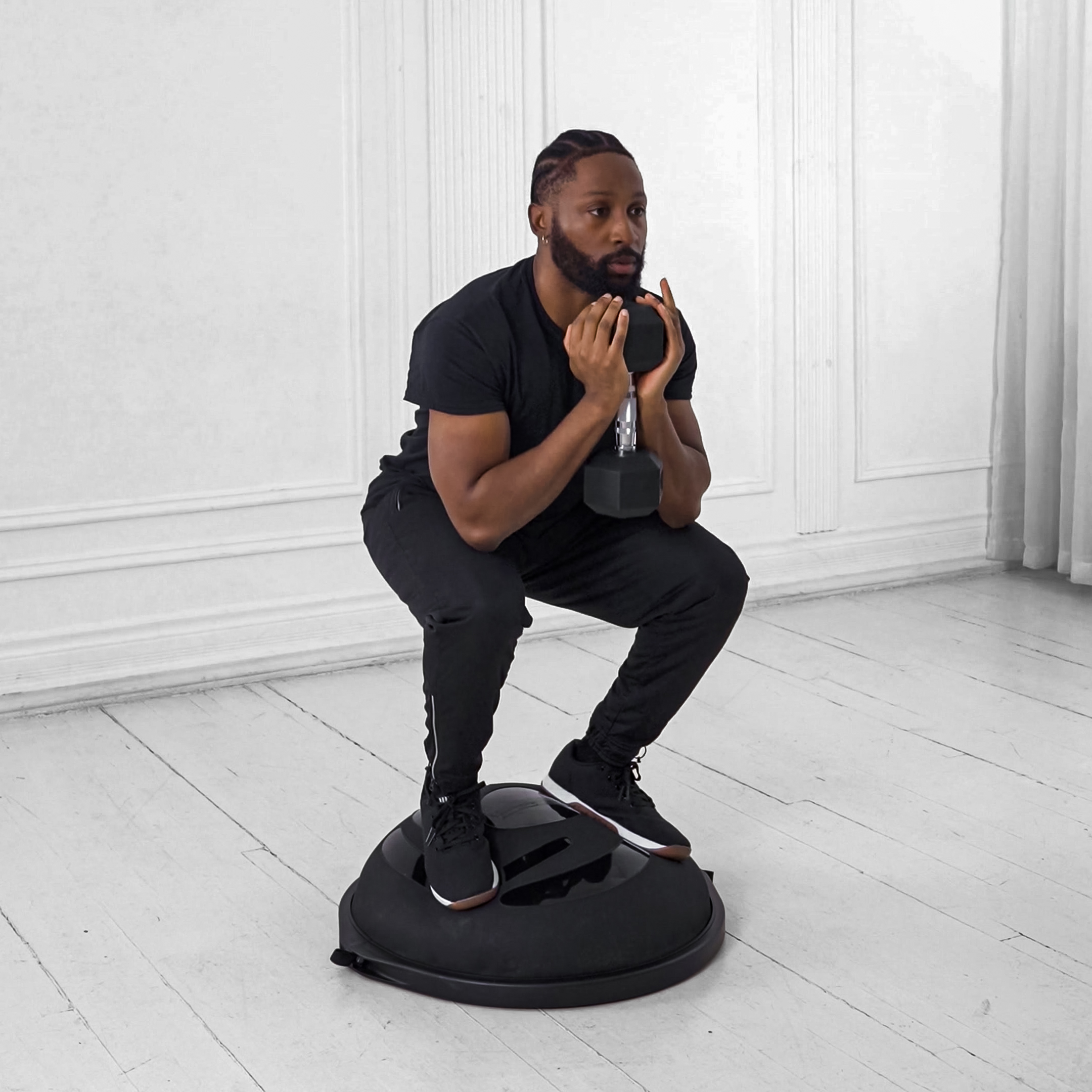 Weighted BOSU Squat, Dumbbell Bosu Ball Squat, Weighted Balance Trainer Squat