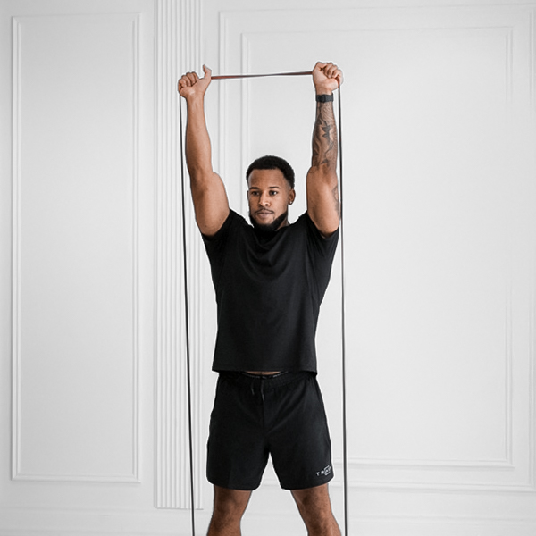 Spotter should support at the wrists or elbows if failure occurs; ensure band does not snap back.