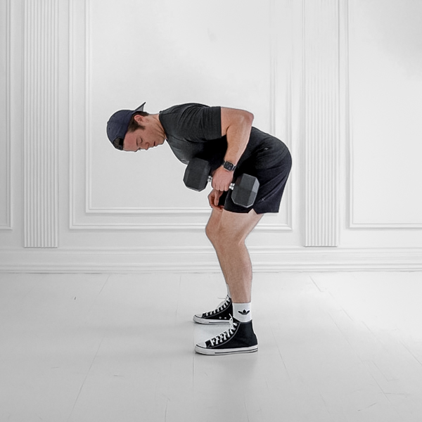 Inhale as you lower the dumbbell; exhale as you pull it up while bracing core.