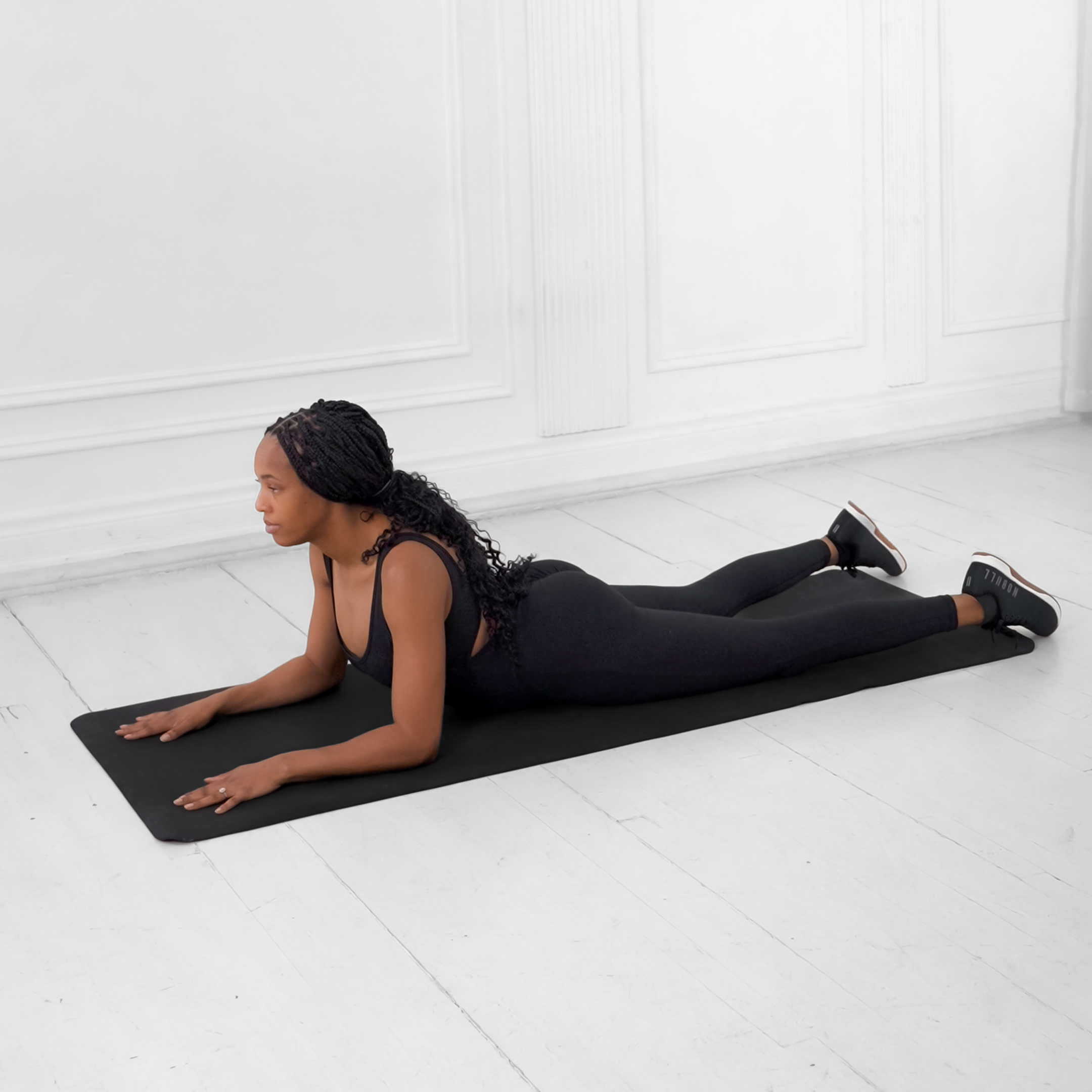Inhale to lengthen the spine; exhale to settle the hips and maintain core engagement throughout the hold.