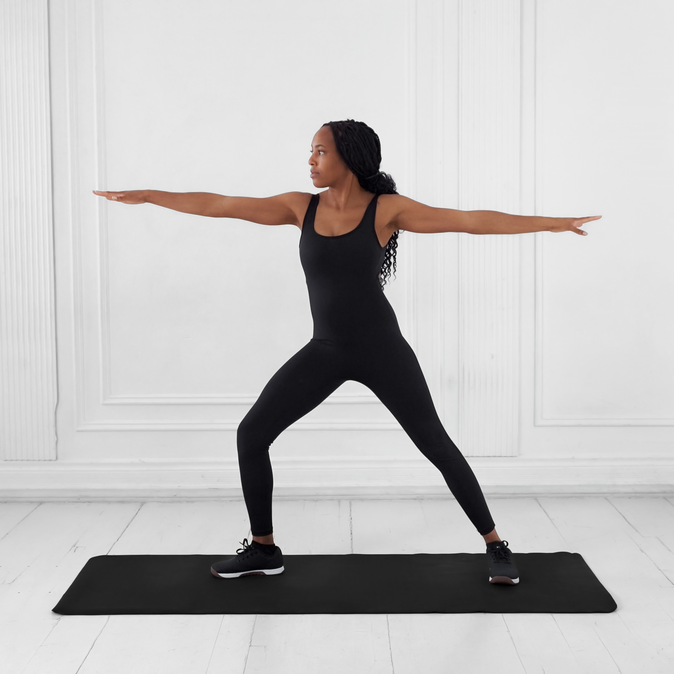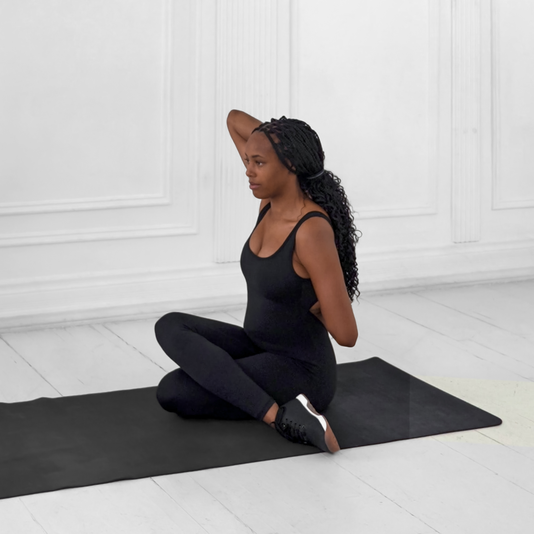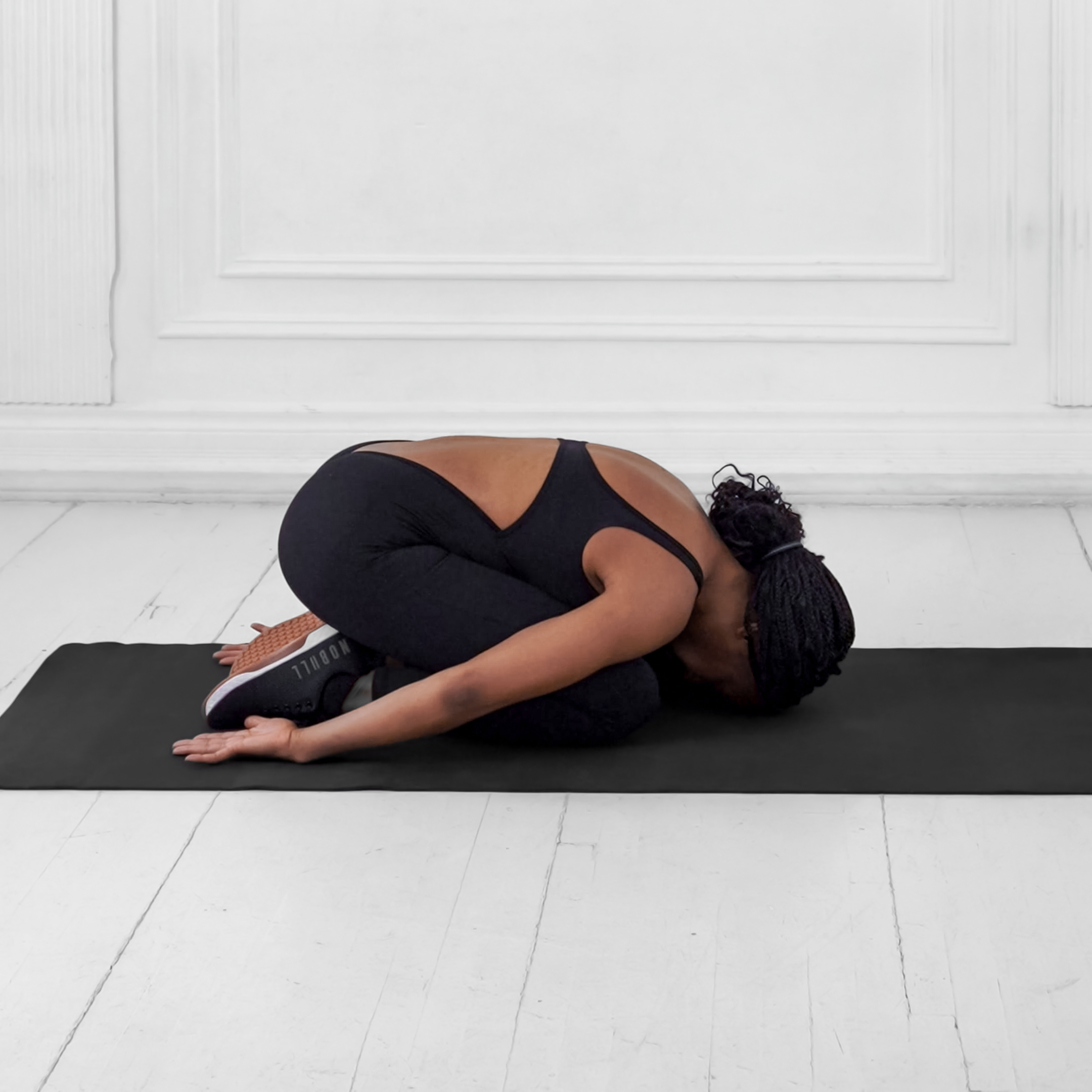 Inhale to lengthen the spine; exhale to deepen the stretch and release tension in the hips.