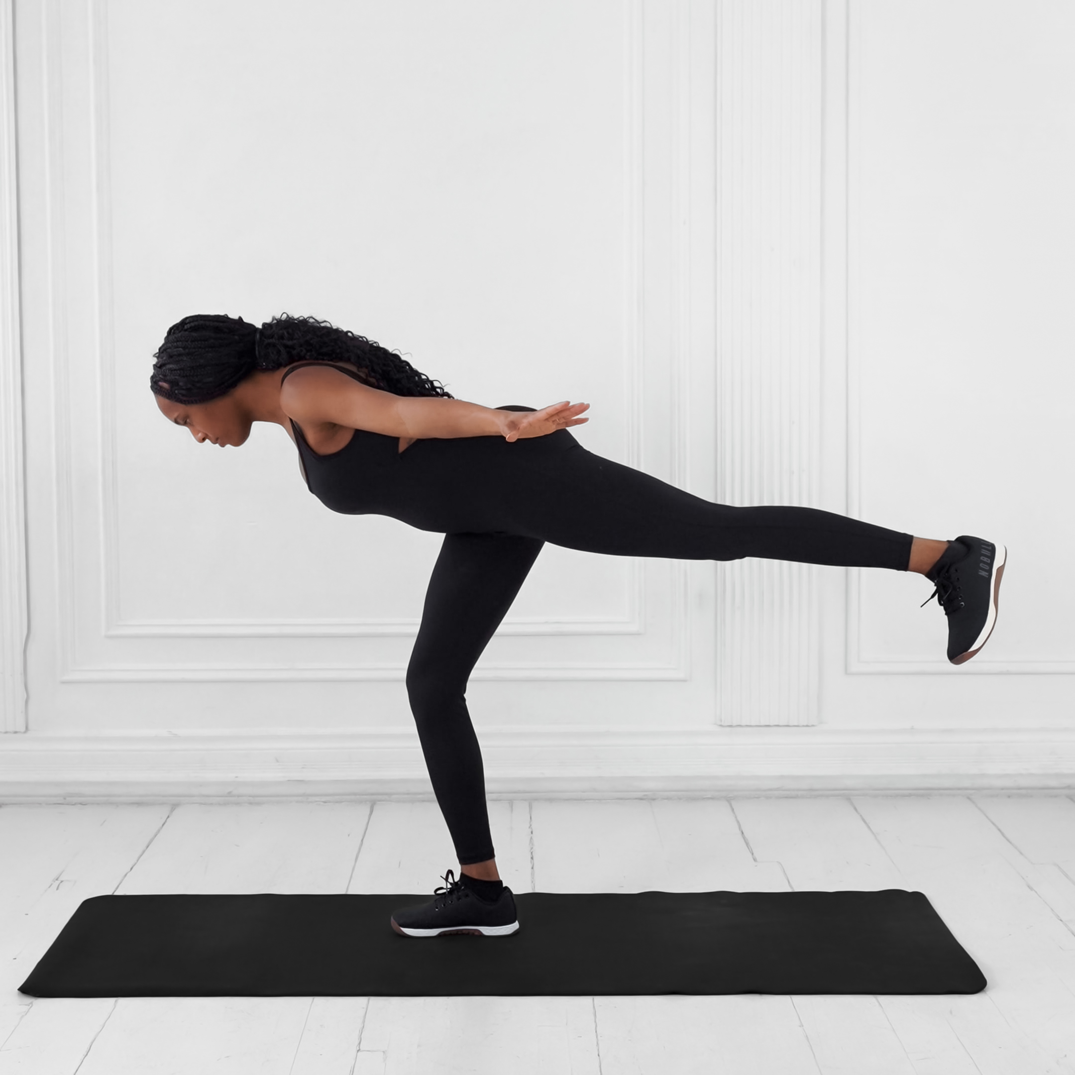 Start in Downward-Facing Dog, then bring one knee forward toward the same-side wrist with shin angled across the mat.