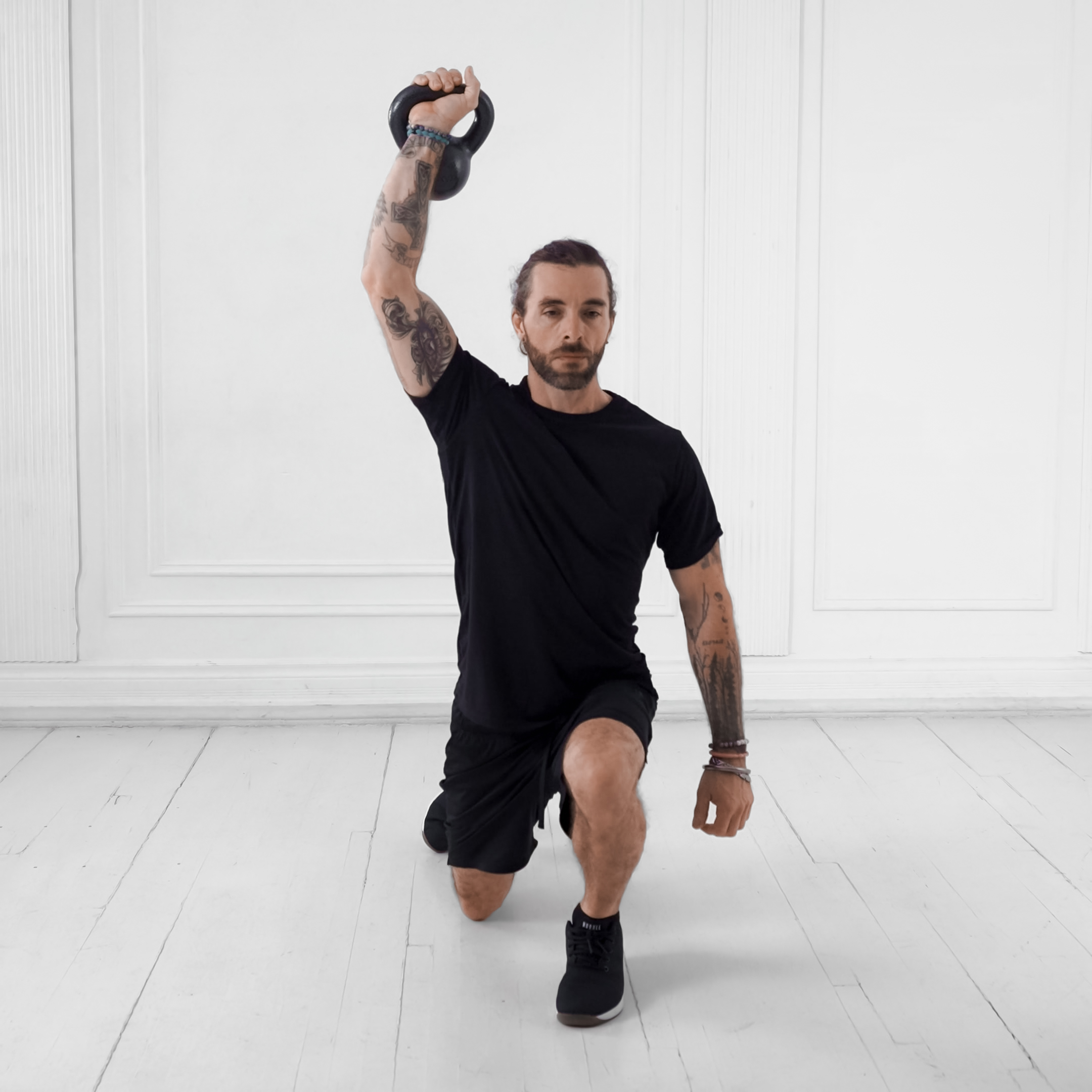 Single-Arm KB Rack Step-Up, One-Arm Kettlebell Front Rack Step-Up, Unilateral Front Rack Box Step-Up