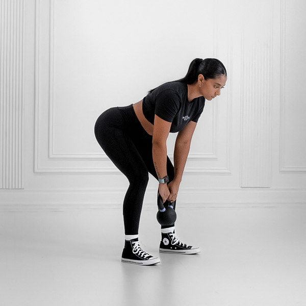 Inhale as you lower the kettlebell, brace core, and exhale forcefully during the explosive pull.