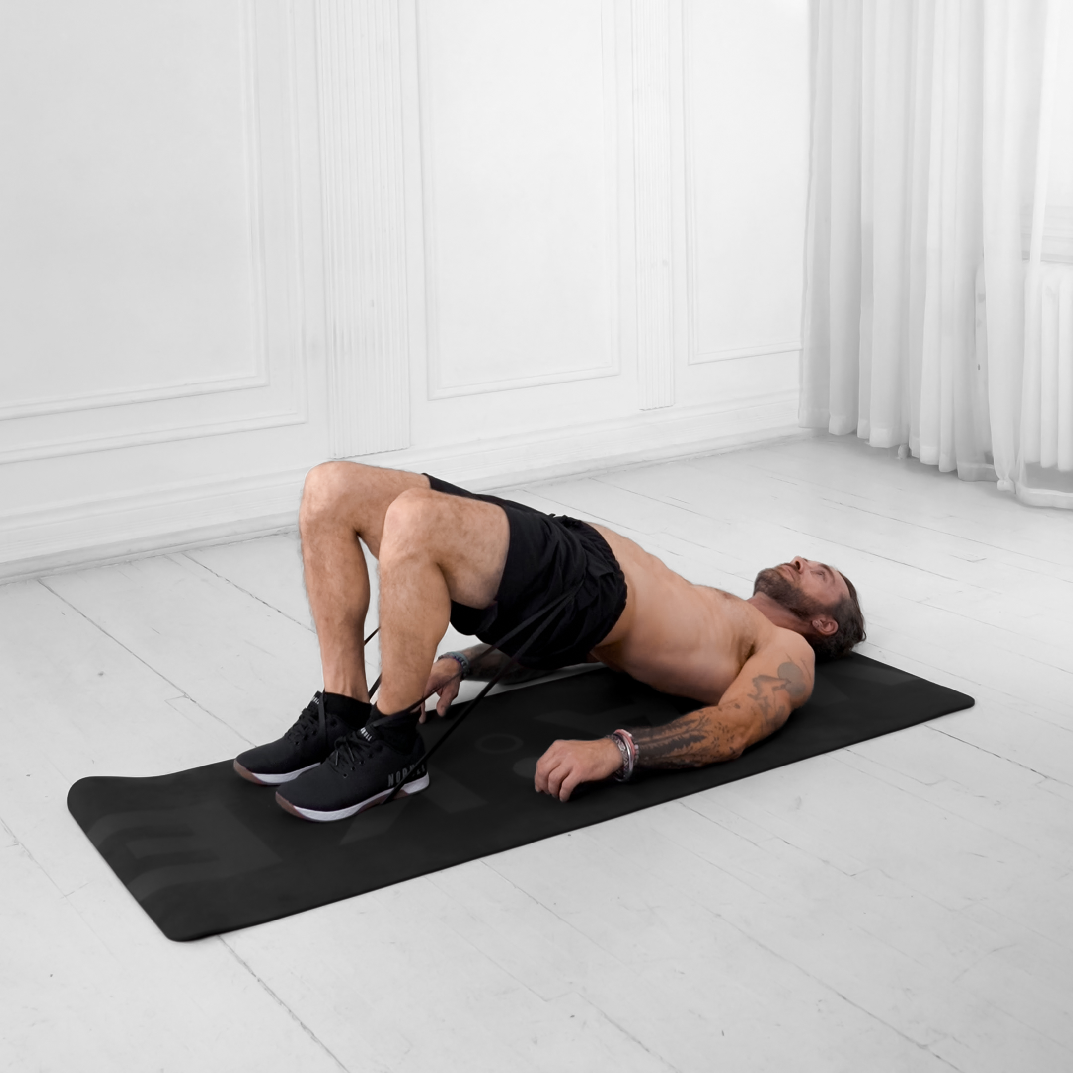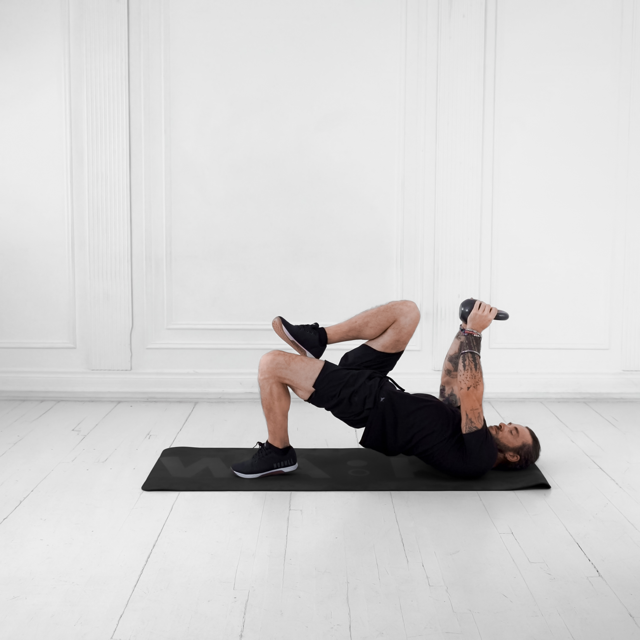 Inhale at the bottom, exhale forcefully as you drive the hips up.