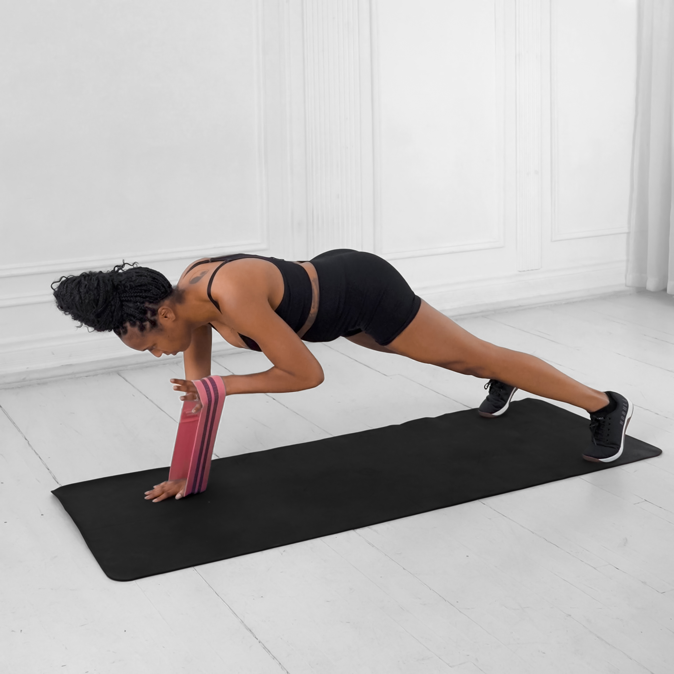 Inhale as you reach forward and exhale as you pull the handles toward your waist.