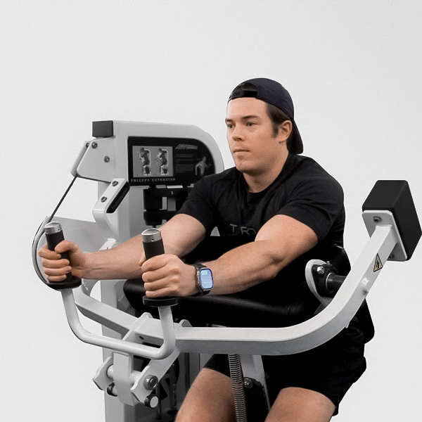 Machine-based isolation exercise targeting the triceps, emphasizing the long head, to build upper arm size and improve pressing strength.
