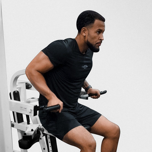 A machine-based isolation exercise targeting the triceps brachii to build arm strength and size, providing guided motion for focused muscle activation across all fitness levels.