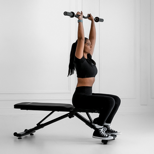 Mini loop band tricep press isolates the triceps brachii using constant band tension to build arm strength and endurance; ideal for home workouts or gym accessory.