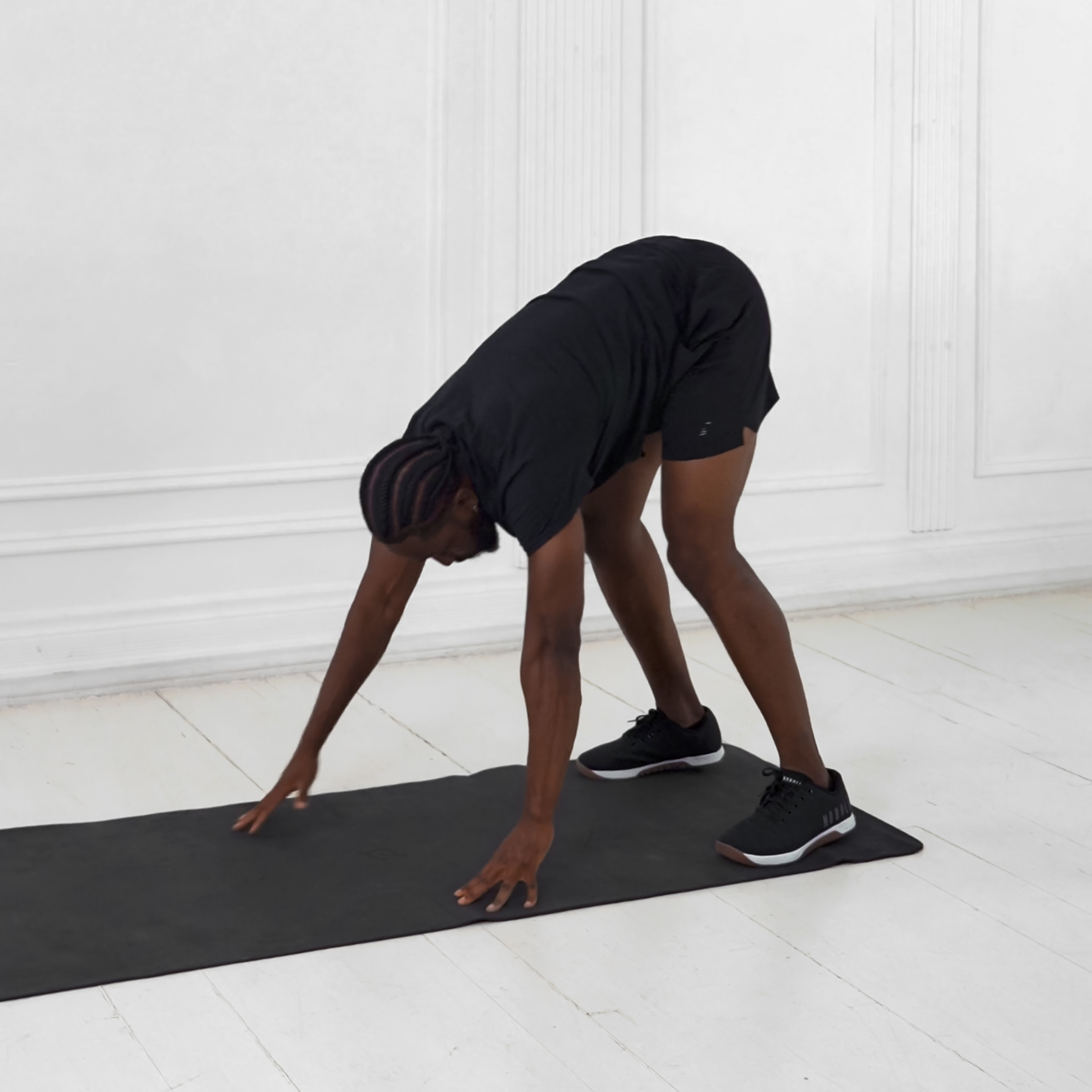 Kneel on the floor or mat with hands slightly wider than shoulders, wrists under shoulders, and body in a straight line from head to knees.