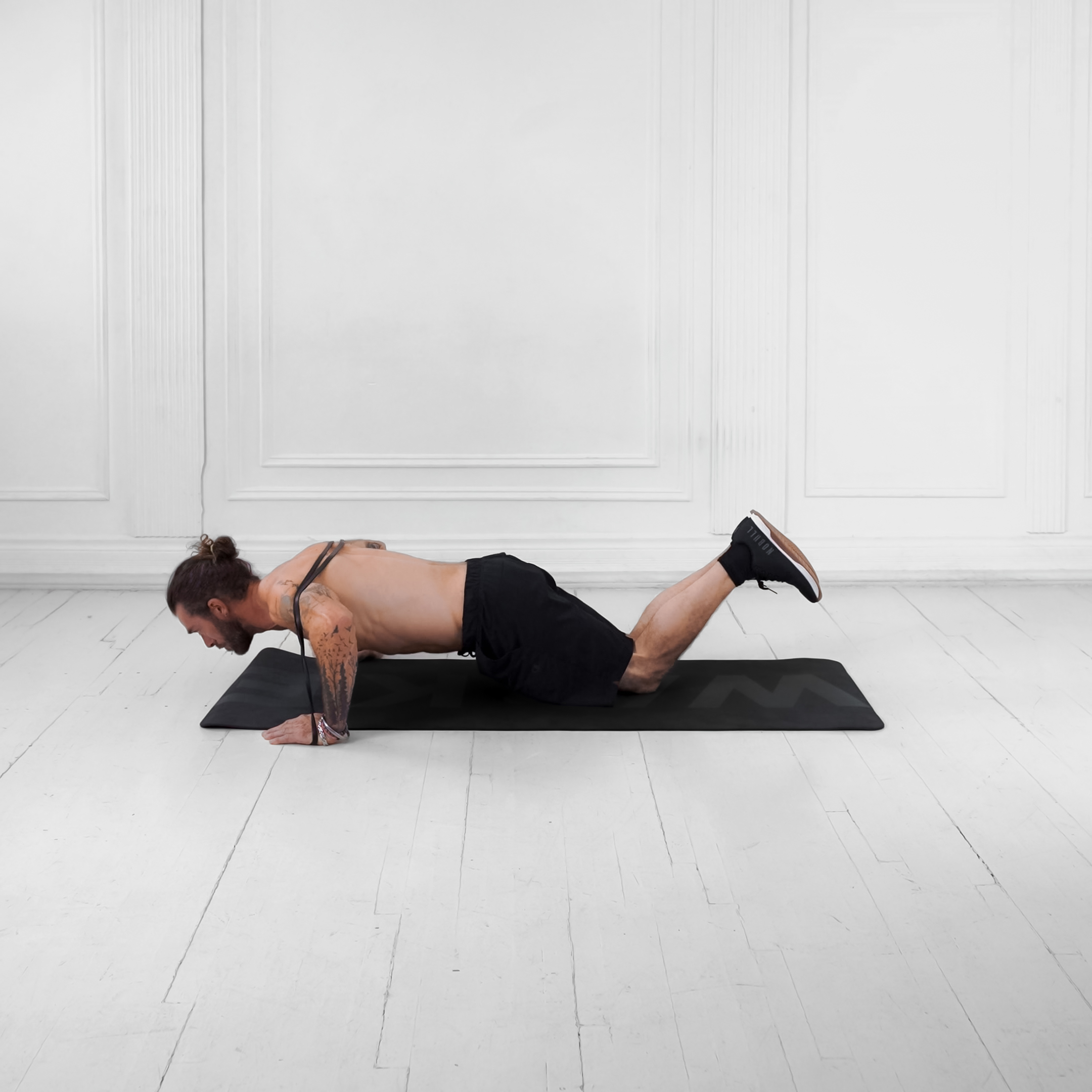 Inhale during the lowering phase; exhale as you push up while bracing your core.