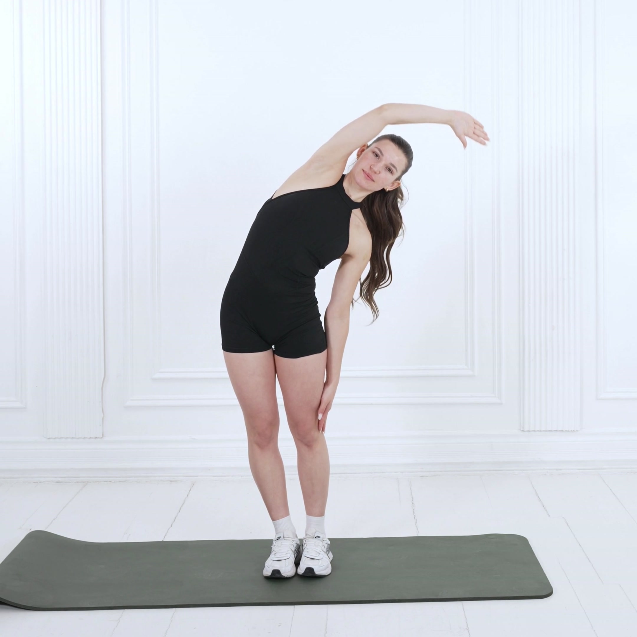 Inhale at the top, exhale as you bend laterally into the stretch.