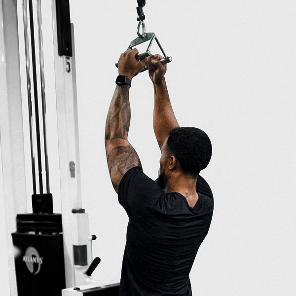 Full arm extension at the top to handle touching the shoulder or upper chest level at the bottom.