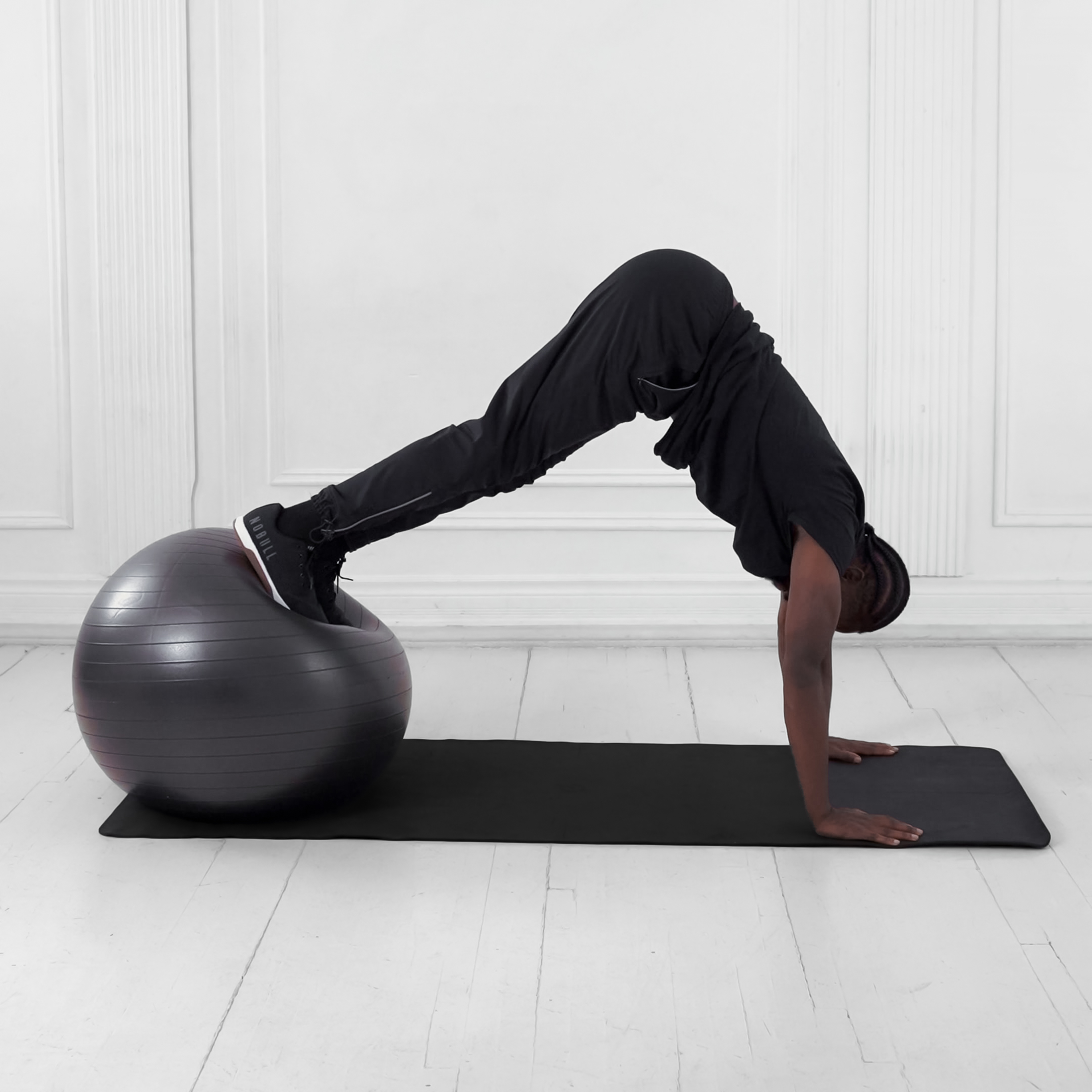 A stability ball exercise where you curl the ball toward your glutes by bending your knees while hips are elevated, targeting hamstrings, glutes, and core to build lower body strength, stability, and coordination.