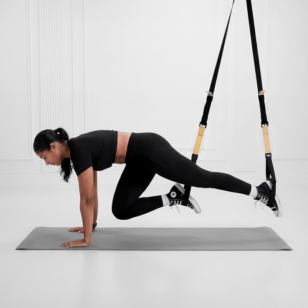 A core isolation exercise using a suspension trainer to target the abs and hip flexors for stability and strength; commonly scaled by bending the knees.