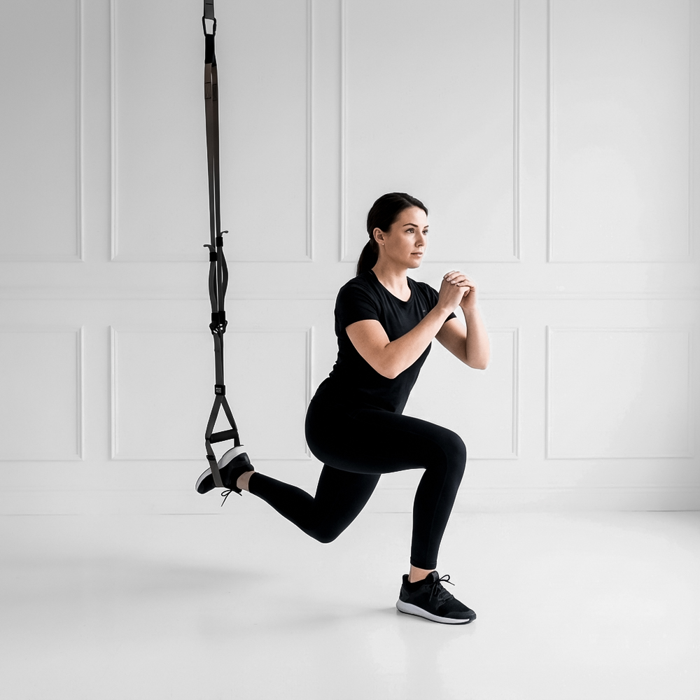 TRX Reverse Lunge, Suspension Strap Reverse Lunge, Assisted Reverse Lunge, Suspension Lunge, TRX Step Back Lunge